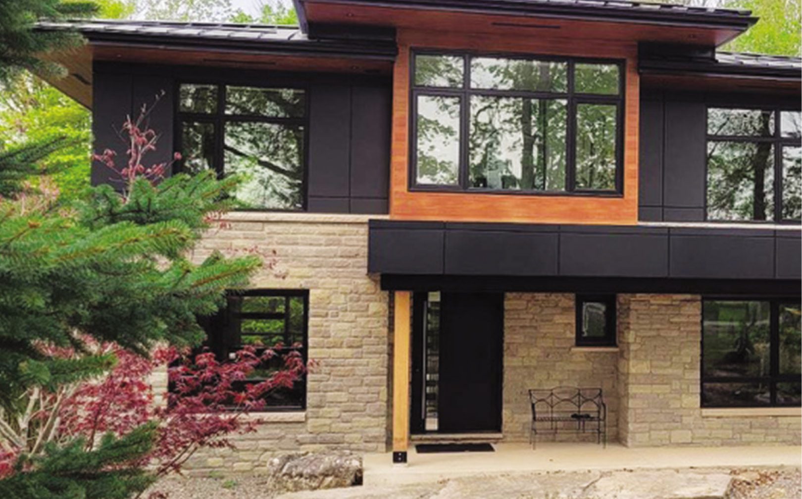 As recommended by our contractor Tamarack Windows and Doors (excellent installation) we chose sturdy black exterior / white interior “Aspekt 1800” windows.